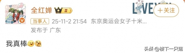 一直以来面对伤病和身材上的变化,全妹都在努力克服,面对外界质疑不看好的声音,她为没有为自己辩解,而且默默的加倍训练,终于用成绩为自己说话,在比赛后发文"我真棒",这才是最好的回应。