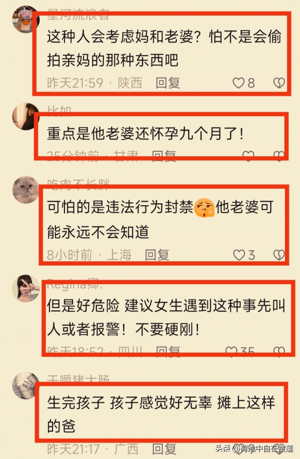 有网友心疼偷拍男子的妻子,认为九月怀胎本来就辛苦,还要承受丈夫背叛和违法的双重现实。