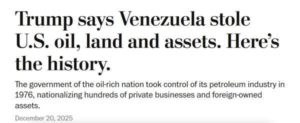 所以你看特朗普政府嘴上说的好听,要赶走外国商品、赶走移民劳动力,但真做起来到处是钉子等着他碰。就算是特朗普政府号称要逆全球化,他们也没忘了拿拉美地区开刀,指责委内瑞拉"偷走"了属于美国的石油。