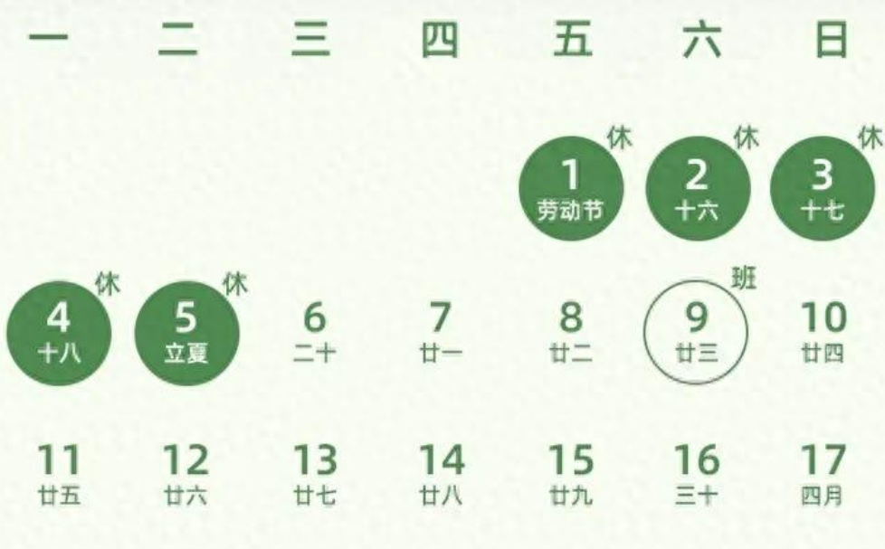 根据国务院办公厅最新发布的2026年部分节假日安排通知,今年五一劳动节放假时间为4月30日至5月4日,一共5天。调休安排也十分清晰:4月27日(周日)、5月5日(周六)正常上班,大家提前做好工作与生活规划,避免耽误事务。