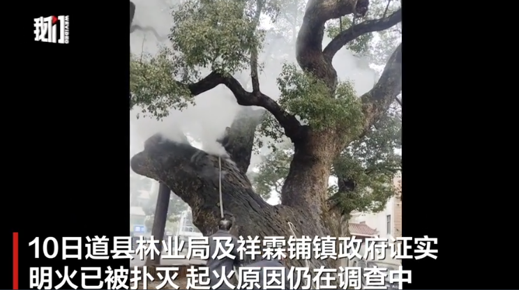 2月10日,湖南道县林业局及祥霖铺镇政府向记者证实,祥霖铺镇一棵千年古樟树于9日发生火情,现场冒出浓烟,经工作人员紧急处置,明火已被扑灭,古树未被烧死。目前,起火具体原因仍在调查中。道县林业局表示,已着手开展火灾损失评估,并将向湖南省林业局请示,邀请技术专家前来提供支持,以确定古树受损状况及后续保护方案。