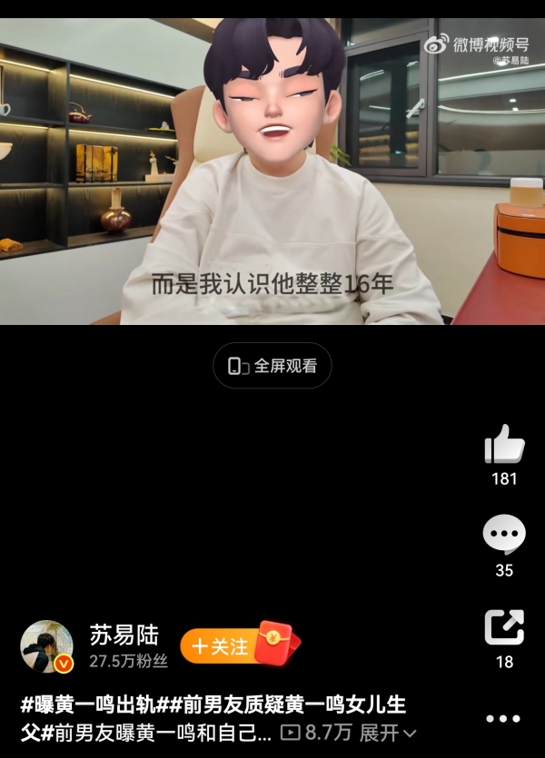 近日,黄一鸣再起大瓜!