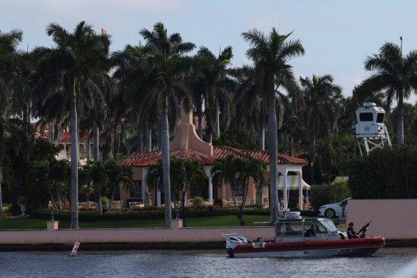 特朗普位于佛州的住所海湖庄园,可以看到执行警戒工作的执法人员 东方IC