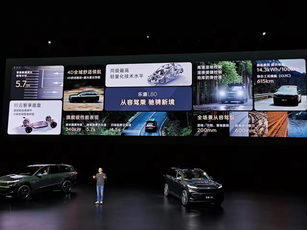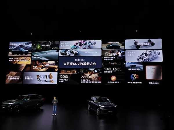 除了空间和补能,乐道L80这次在智能和性能上也堪称"豪华堆料"。智能驾驶提供了两种选择:一个是Orin-X纯视觉版,另一个是搭载蔚来自研5纳米神玑芯片加激光雷达的高阶版,支持全场景领航辅助,连城区领航换电都能实现。李斌说,这是把蔚来旗舰的智能科技"全家桶"都下放到了20多万的车上。座舱里全系标配高通骁龙8295P芯片,还有35英寸的AR-HUD和后排17.3英寸的娱乐屏,智能体验直接拉满。