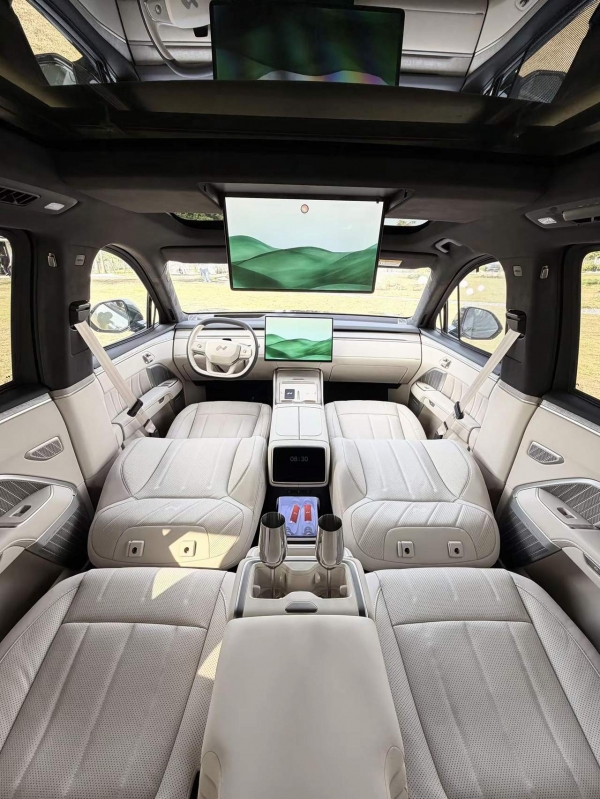 性能上,它基于900V高压平台打造,后驱版百公里加速5.7秒,四驱版更是只要4.5秒。底盘用的是前双叉臂后五连杆的悬架,还全系标配了智能空气悬架和CDC减震器,开起来既舒服又稳当。安全也没含糊,全车配了9个安全气囊,第二排侧气囊更是达到了14升的旗舰级容量。