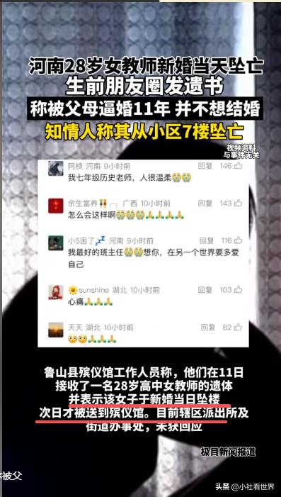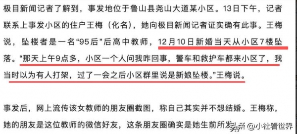 一直到12月11日, 殡仪馆才收了她的遗体, 工作人员确认, 28岁, 高中女教师, 新婚当天坠楼, 第二天才送过来。