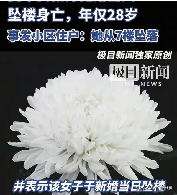 婚礼当天早上9点多, 小区邻居听见警笛声和救护车, 刚开始还以为谁家吵架了, 后来业主群里炸了锅--新娘从7楼掉下来了。