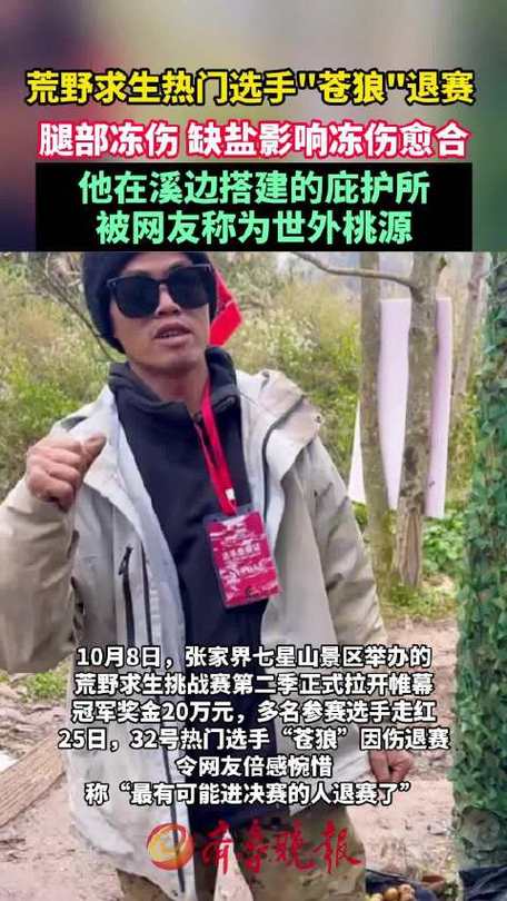 最被看好冲进决赛的"苍狼"在10月25日因中度冻伤退出张家界七星山荒野求生挑战赛第二季。