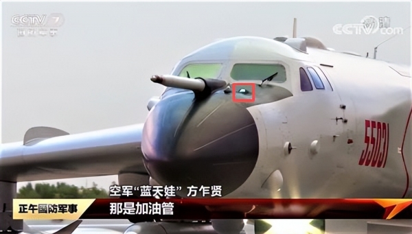 而为保障复杂气象条件下的加油精度,轰-6N还在机鼻配置了EFVS窗口(增强型视觉系统)和加油管照明灯。