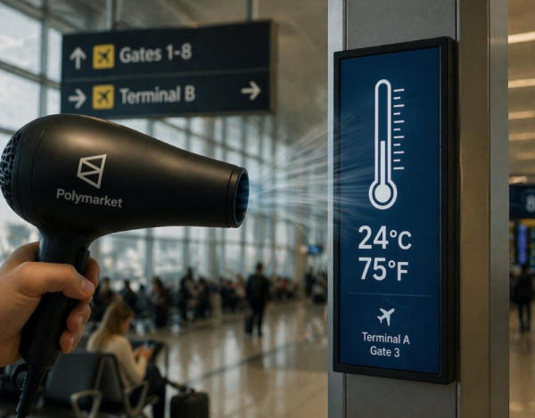 在Polymarket的Discord聊天频道里,赌徒们甚至玩起了黑色幽默:有人分享了一张AI生成的图片,画面中一名男子正拿着吹风机对准机场跑道旁的气象传感器,还有人调侃发问:"你昨天对巴黎机场的温度传感器做了什么?用的是吹风机还是打火机?"