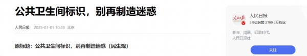7月1日,《人民日报》发出一篇帖子,指出了现如今公共卫生间的男女标识乱象。