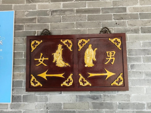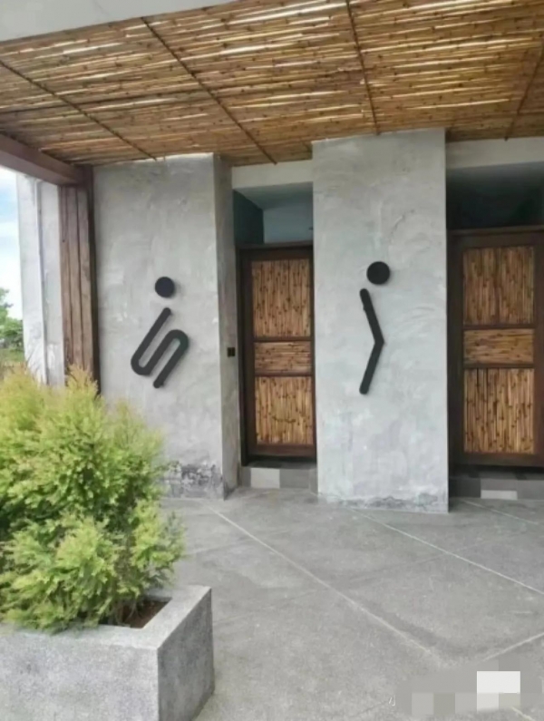 有景区别出心裁,设计了一款极精致的木质标识牌,刻上方向箭头,写上男女两字,四周再配上木质雕花,区分性别的效果那是杠杠的。
