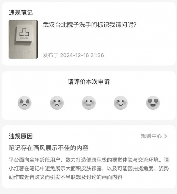 2024年12月,一名网友发文吐槽,她发现武汉有一处洗手间用了汉字标识,但给人的观感非常不适。
