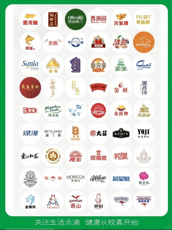 而像胡姬花花生油、欧丽薇兰橄榄油、香满园、元宝米面、丸庄酱油、丰厨央厨食品、洁劲100洗洁精、海皇烹饪油等,都只用自己的品牌名,不显示金龙鱼字样。