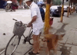 哥们,你家狗能耐了,会坐自行车