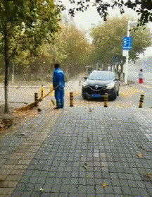 求大爷心理阴影面积?你说这还让人家睡么干活呀?这风刮得也太大了吧!越扫越多,等会领导来视察还以为我今天偷懒了呢!