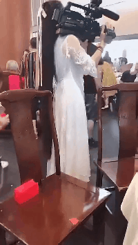 卡在椅子里了,为了掩饰尴尬,赶忙来个托马斯回旋