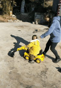 小姨太调皮了,一个小车也和孩子抢!