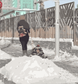 熊孩子不想回家,抱又抱不动,只好这样拖回家了