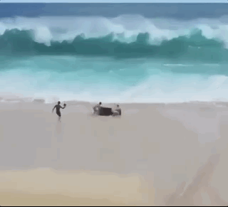 在大浪滔天的海边坐沙发上摆拍?