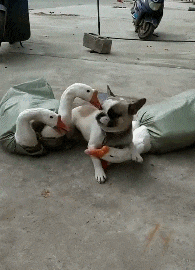 狗子:哎呀,快放我下来,不然真咬你了!