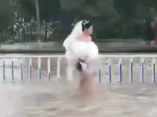 你不是会游泳嘛!直接过去,也不会摔倒了!