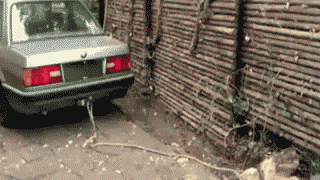 司机为了车子不被别人偷走,在后面系上了一个石头,结果悲剧了