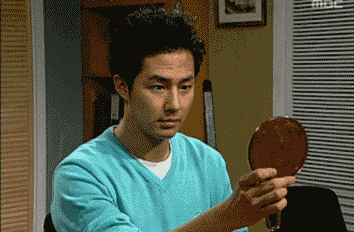 大哥,这么开心,镜子里面的人肯定很帅吧!