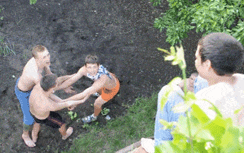 哥们,你就大胆放心的跳吧,我们就在下面接着你!
