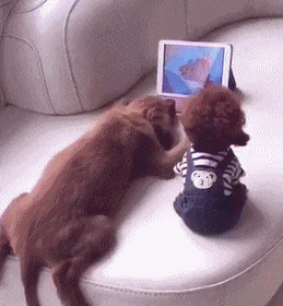 现在的动物都成精了,还会看动画片