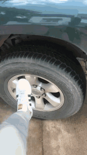 你这轮胎是不是又没气了,那个还没修好呢?