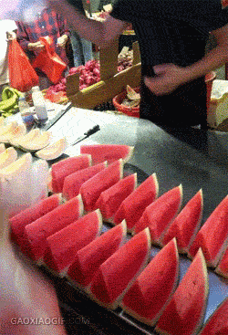 这西瓜切的速度老快了