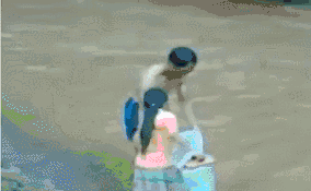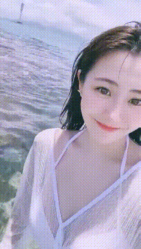 小姐姐你别太激动,当心手机掉海里冲走了。
