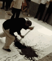 大爷你这是拖地呢还是写字呢?原谅我不懂艺术,活该看不懂
