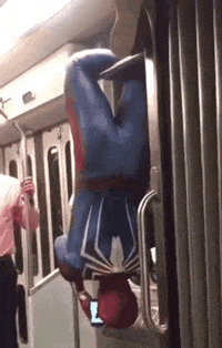 地铁偶遇倒挂的蜘蛛侠,居然在刷新闻