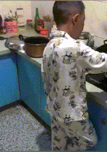 老爸今天要出门打工,孩子起得非常早给老爸做顿早餐。