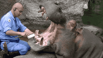 原来河马是这么刷牙的
