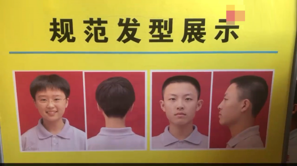 学校煞有介事的展示着女生和男生发型标椎,细枝末节标椎到要求学生的发型是流水线上生产的一样。男生要求符合规定的平头,女生的头发则比男生稍长而已,不能留怪异发型,尽管学校的发型标椎本身就很怪异。
