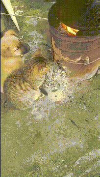 水火不容的两个物种,竟然为了一起烤火变成了朋友