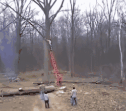 有点常识的都知道树要倒的时候,人群要立刻散开,你这还直直的站着等着让树袭击,也是没谁了。