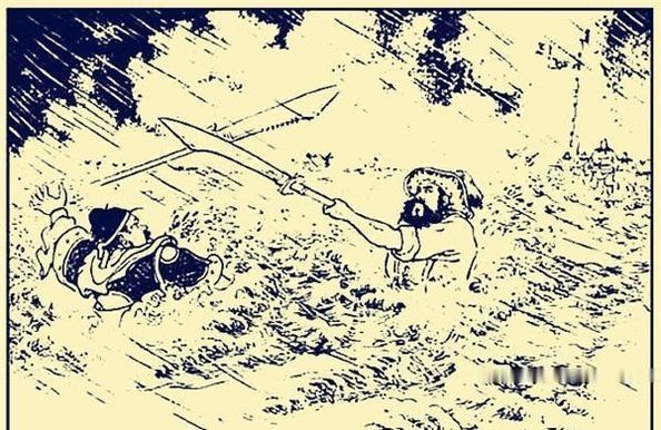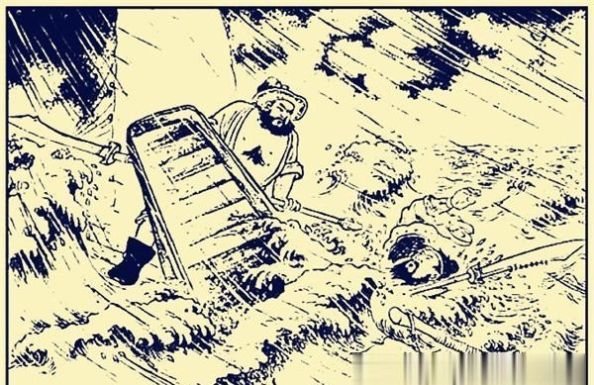 只见上流头一将,撑大筏而至,将小船撞翻,庞德落于水中。船上那将跳下水去,生擒庞德上船。众视之,擒庞德者,乃周仓也。