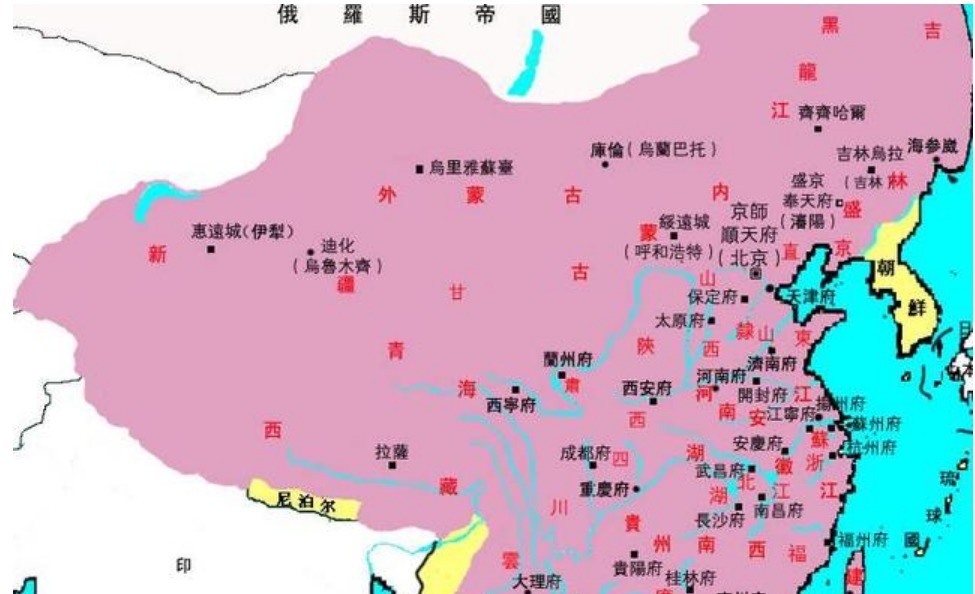 首先,让我们谈谈明朝时期的中国领土。自汉朝以来,明朝是中国唯一的正统汉朝。但是,明朝在融合其他文化方面的表现稍差一些,这也导致明朝未能将新疆西部和北部的蒙古草原纳入中国领土。明朝也留下了光辉的历史。世界大航海时代比明朝的郑和西航晚半个世纪。但是,明朝的地理时期不如清朝时期大。看看这张清朝的地理图。