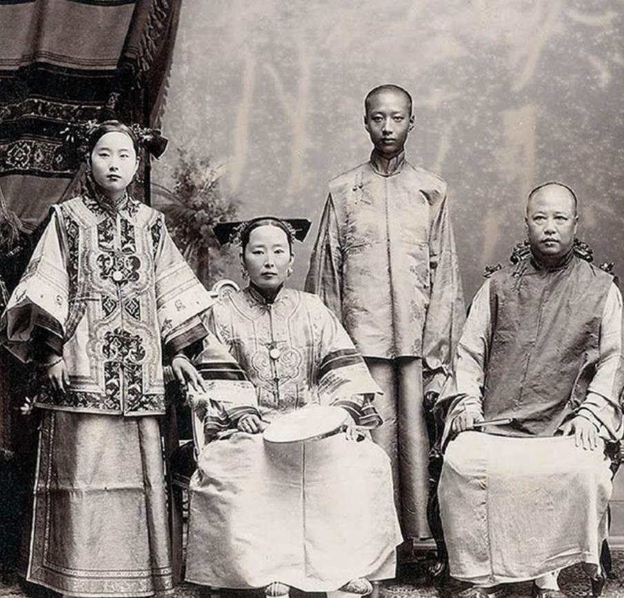 这是晚清年间一户旗人家庭的合影,或许很多人都认为古代有权有势的男人都会娶三妻四妾。其实清廷的婚姻制度乃是一夫一妻多妾制,家中可以娶多位小妾,但是正室夫人却只能只有一位。
