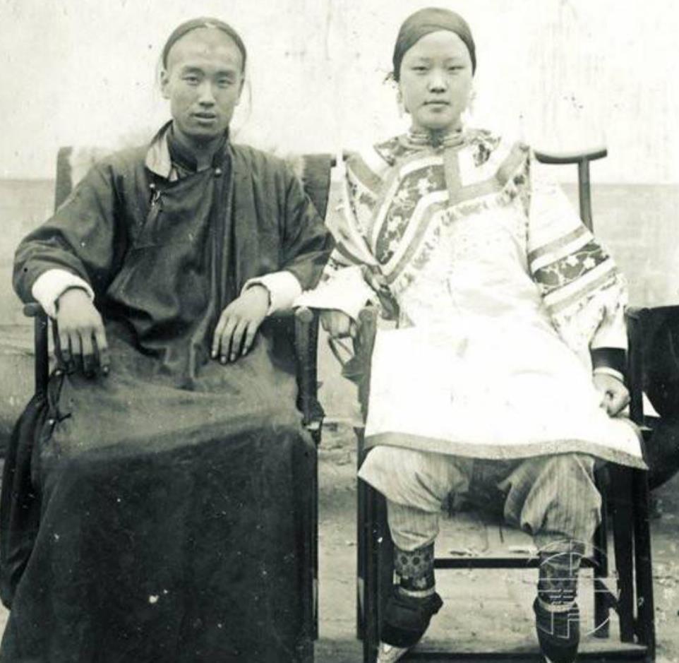图为晚清时期一对普通家庭的夫妻留影旧照,相比起豪门富裕的家庭,穷人家大部分都是一夫一妻。倒不是因为穷人更长情,只是因为多娶一个人需要更多的花销,这对晚清时期的穷人家庭来说是一笔小的费用。