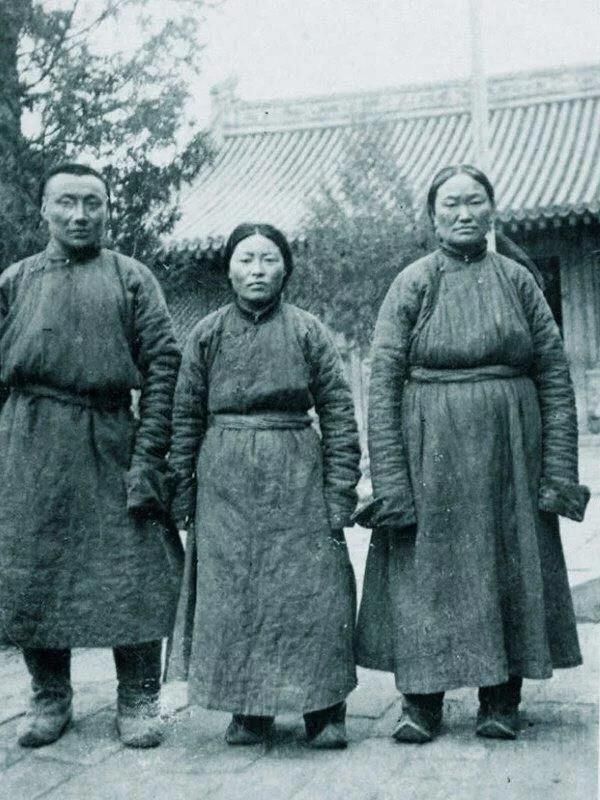 清朝农村女人罕见照片:晚清一家三口之家,长的都很壮,像蒙古族牧民,常年累月的风吹雨打已在他们的脸上留下深深的岁月的痕迹。
