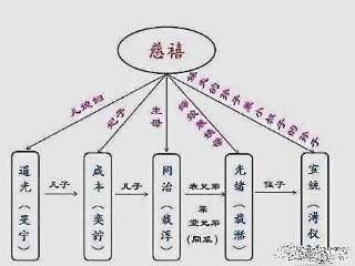 那么皇帝无子嗣怎么办?也就只能从其他旁系的皇族去挑选出皇帝了,而选出的皇帝自然就要认清朝几位先帝的其中一位或两位为父。如此自然也就造成了慈禧与光绪、宣统两代帝王相对于复杂的亲戚关系。
