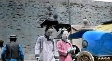 晚清上色老照片:图为两个皇宫里的宫女奉命出宫办事情。两位宫女的形象和电视剧看到的差别太大了,长得非常丑。