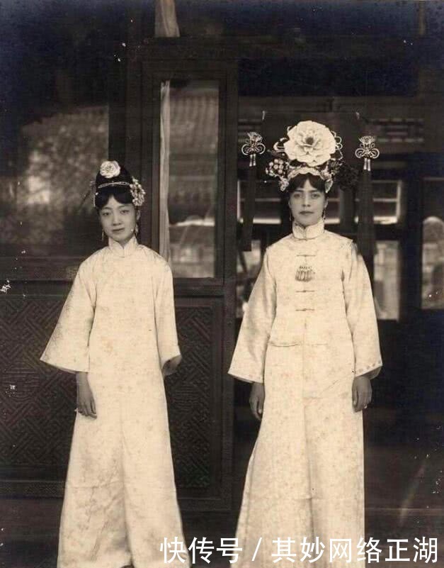 图三:末代皇后"婉容全身照。照片中的婉容一袭白衣,略带微笑的面容与绝美的体态,简直是美艳不可方物,一下子就将旁边身穿宫装的外国美女(婉容的英语老师)压下去了。照片中的她将皇后的端庄大气以及东方女性独有的魅力诠释得淋漓尽致,真是美艳至极。