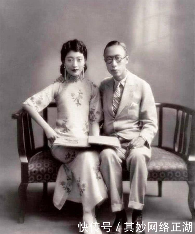 图二:末代皇后"婉容全身照。照片中的婉容衣着华丽,装扮大气高贵。姣好的面容和优雅的坐姿,尽显皇后的端庄大气。旁边的丈夫溥仪则打扮得很绅士,两人都走在时尚的最前沿,凑在一起也算是郎才女貌。