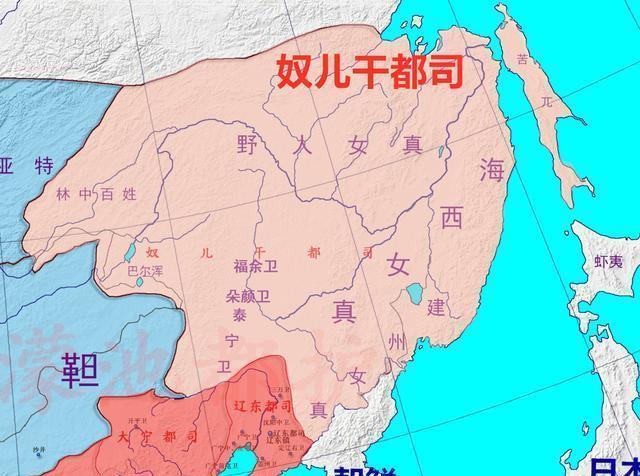 然后看永乐时代的军事机构管理范围。永乐时期的军事机构延伸主要是在东北、漠南以及西北。在东北方面,设置了奴儿干都司(1411--1433),来控制黑龙江流域。奴儿干都司管理范围是东到库页岛,西到斡难河,北到外兴安岭。需要注意的是,奴儿干都司控制地区所有的卫所都是册封的,只有奴儿干城本地驻扎过军队。因此,一旦奴儿干都司被废除,其下的卫所就是名存实亡。该地区的面积大概有200万平方公里。